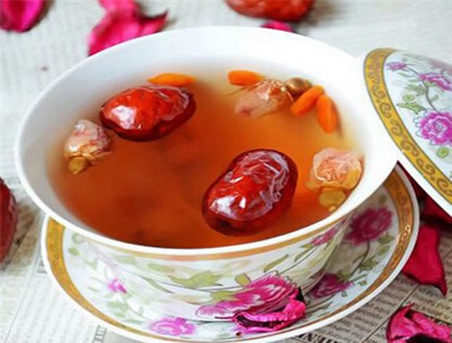 紅棗玫瑰花茶的功效與作用1,補(bǔ)氣補(bǔ)血養(yǎng)顏,我們知道紅棗有補(bǔ)血功效,所以,紅棗和玫瑰花搭配起來,具有益氣補(bǔ)血、美容養(yǎng)顏的作用,經(jīng)常飲用紅棗玫瑰花茶可以由內(nèi)而外地改善肌膚膚質(zhì),使面色紅潤。