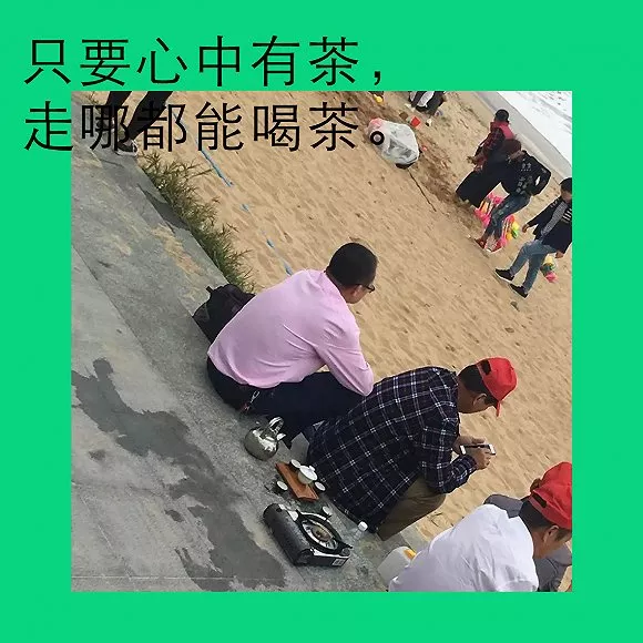 即使是去海邊玩,出去爬山和戶(hù)外徒步的時(shí)候,也不忘泡上工夫茶,下雨的時(shí)候打上傘繼續(xù)喝。