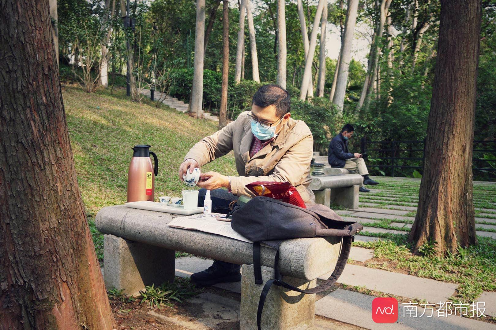 逛公園也不忘帶上茶具泡壺工夫茶