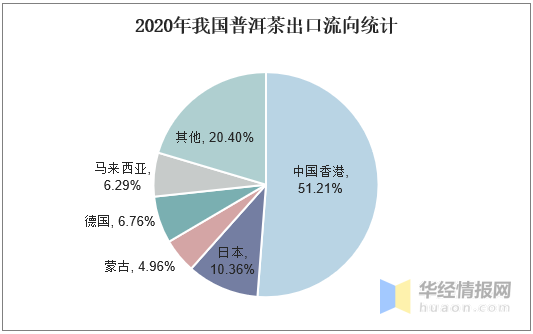 在海外國家當中日本、馬來西亞等國是我國普洱茶出口主要對象,2020年除51.21%的出口普洱茶流入香港以外,日本出口量占到我國普洱茶出口總量的10.36%。