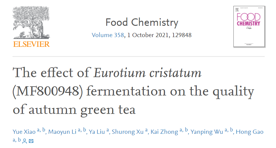 近日,我院高鴻教授團隊以秋茶為原料,利用專利菌株“冠突散囊菌PW-1”進行秋茶發(fā)酵,探究冠突散囊菌PW-1菌株對黑茶品質的提升作用及機制,相關研究成果以我院為第一單位發(fā)表在食品科技領域頂級期刊《Food Chemistry》上,題為“The effect of Eurotium cristatum (MF800948) fermentation on the quality of autumn green tea”。我院博士研究生肖月為第一作者,高鴻教授為通訊作者,該項目獲得了四川省科技計劃項目基金(No. 20ZDYF3186)的支持。
