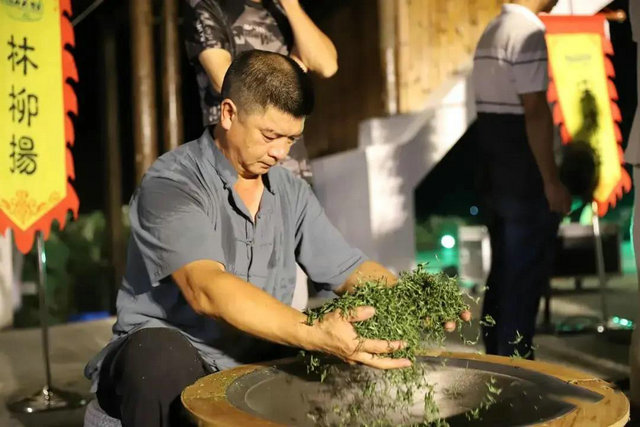 比賽現(xiàn)場,手工制茶師們紛紛亮出絕活。只見制茶師將茶葉快速入鍋,嫻熟的雙手在溫度200攝氏度左右的炒鍋中翻轉(zhuǎn)騰挪。經(jīng)過一遍遍翻炒、一遍遍揉捻、一遍遍抖散茶團,周寧高山云霧茶濃郁的清香撲鼻而來。