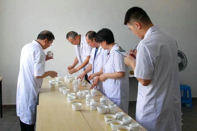 評外形、鑒湯色、聞香氣、品滋味、看葉底……斗茶賽現(xiàn)場,8位審評專家揉捏嗅聞,細看細品,專注評審參賽茶樣,根據(jù)茶樣的外形、香氣、湯色、滋味和葉底五個方面進行評分,將五個分數(shù)相加,從高到低設(shè)置獎項,并對獲獎茶樣進行質(zhì)量安全檢測,評選出各個茶類的茶王一名,金獎兩名,銀獎三名。